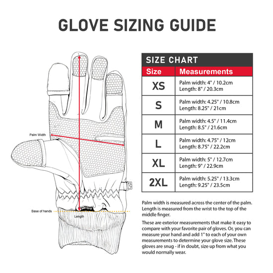 ProMaster 4-Layer Photo Gloves are excellent for photography in cold weather. The 4-layer design is windproof and water resistant to keep your hands warm. The index finger and thumb tips fold back and are held in place with small magnets. This allows for a more tactile experience with your camera. The index fingertip is made of a touch screen compatible material allowing you to operate a camera touch LCD screen, tablet, or phone easily when it is not folded back. A non-slip coating on the fingers and palm ensure a firm, safe grip on your precious photo gear. Ribbed wrist cuffs keep wind out and warmth in.