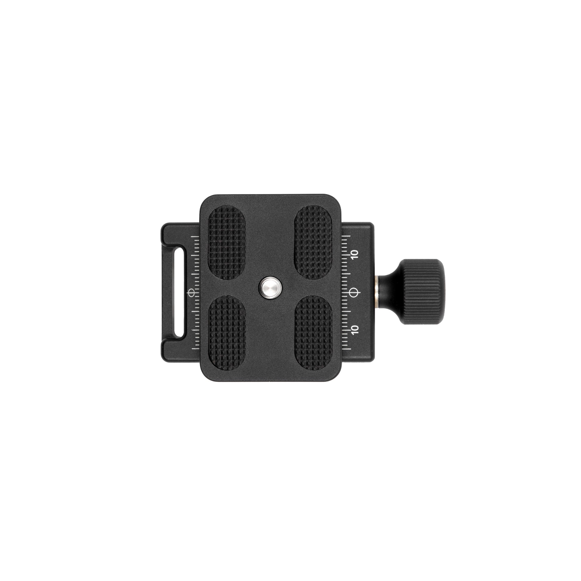 This kit includes a ProMaster 50mm Quick Release Plate (1816) which incorporate two removable safety bolts to prevent it from accidentally sliding out of the clamp.