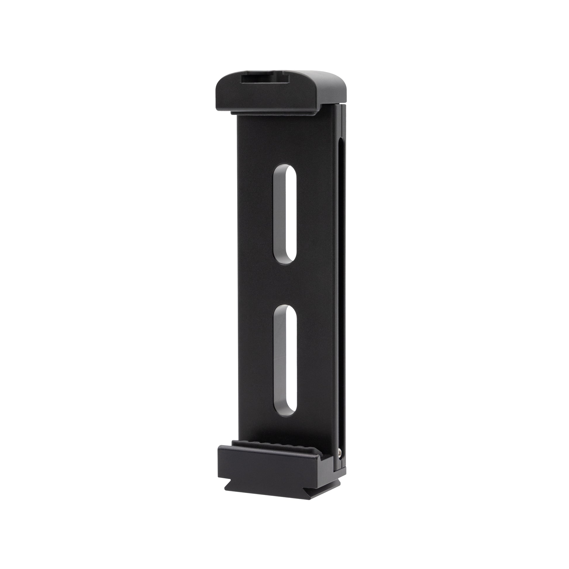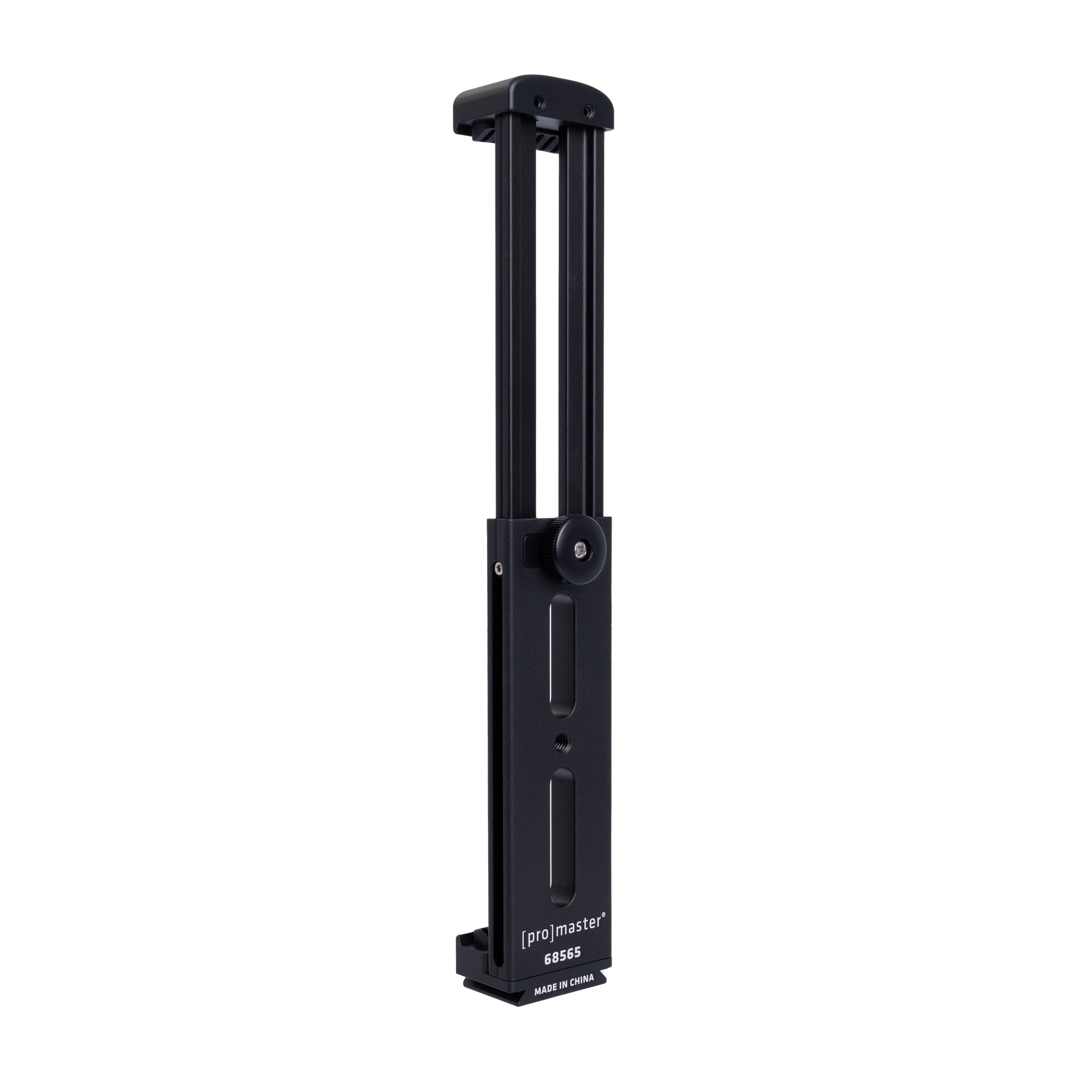 The ProMaster Dovetail Tablet Clamp XL is a great way to mount your tablet to a tripod, flex arm, studio clamp, and more, using one of its two ¼”-20 threaded ports. Or, connect it to a tripod using the integrated Dovetail (arca-compatible) foot. You can also mount an accessory with a cold foot, such as a light or microphone, to the clamp’s integrated cold shoe.