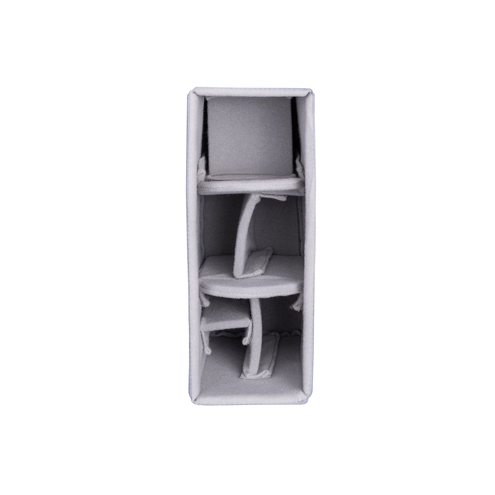 Inside you will find a light grey interior against which small items stand out, so they don't get lost at the bottom of the bag. The main compartment is customizable using movable dividers that provide cushioning. This main compartment is also removable so you can use the Jasper bag to carry other things, and/or you can drop the main camera compartment into a different bag. Behind the main camera compartment is a slender compartment for holding a tablet or flat accessories such as pop-up reflectors, exposure cards, etc…