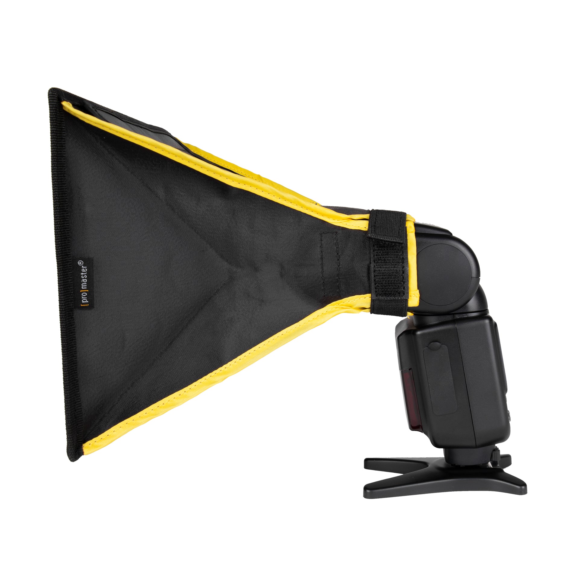 The PROMASTER SPEEDLIGHT SOFTBOX creates pleasing portraits by softening your speedlight's illumination. Its internal baffle can be adjusted for softer light. The special bounce feature works by directing a main light towards the ceiling (for a large, soft fill) while the open bounce panel directs some light forward to open shadows and make your subject stand out.