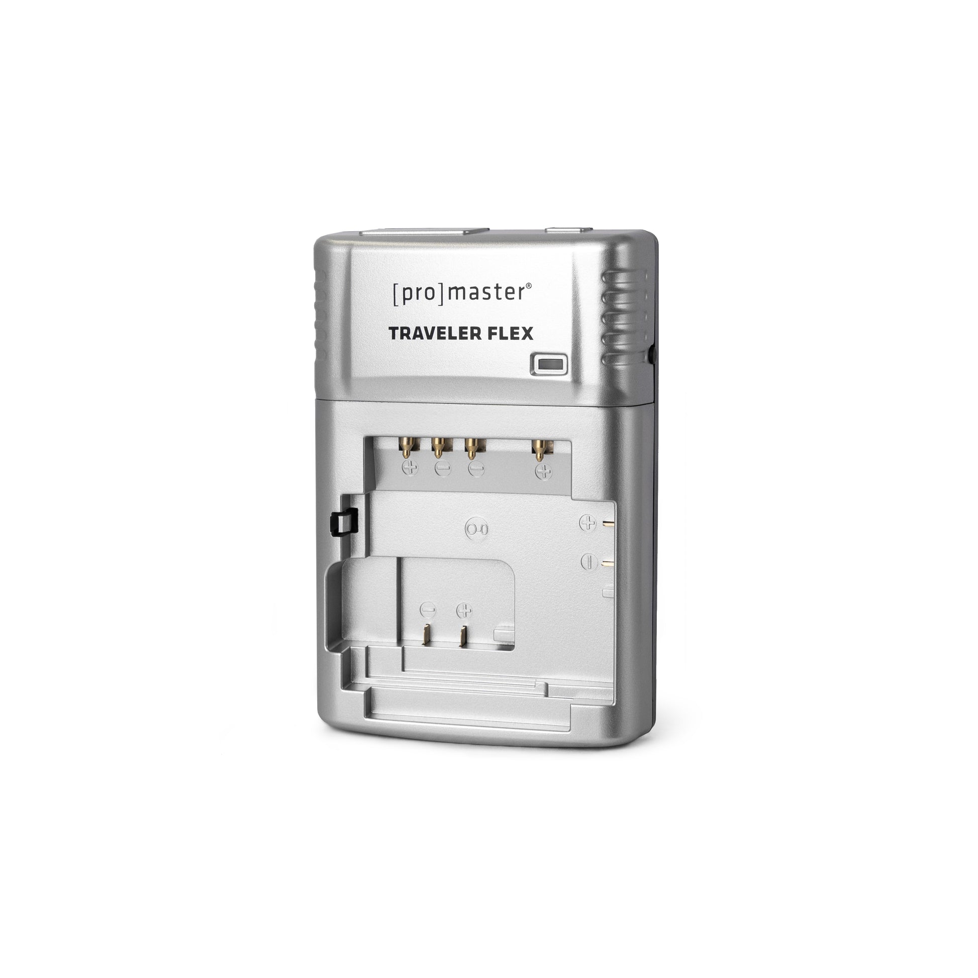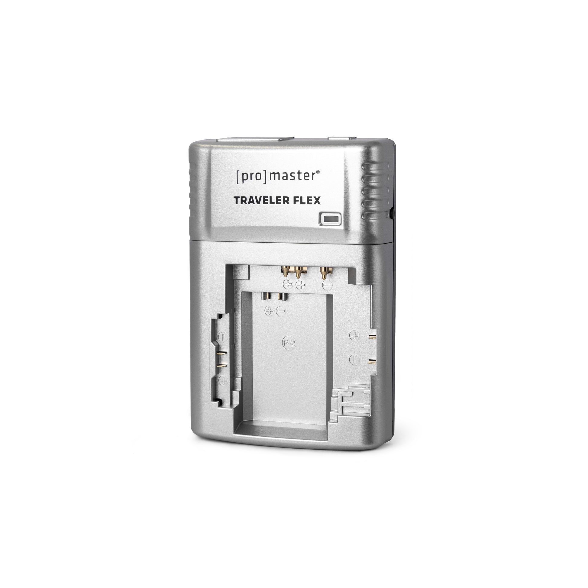 The ProMaster Traveler Flex Lithium-Ion Battery Charger is compact, lightweight, and easy to use: just plug it in and charge your battery. A convenient LED light turns red when your battery is charging and green when charging is complete. True to its name, the Traveler Flex is a great travel solution and has multi-voltage circuitry that accepts 120-240V for worldwide use with the included AC adapter (an outlet adapter is required for use in some countries). The Traveler Flex charges most batteries in two hours or less, and can be positioned flat on a desk or tabletop so that your batteries remain securely in place while charging.