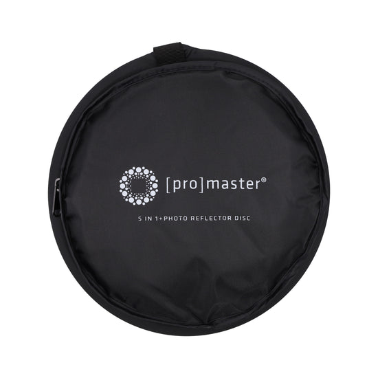This ProMaster 5 in 1 22” Collapsible Reflector stores at less than 8” but opens to a full 22” diameter. It includes a reversible 2-sided zip-on cover to achieve 5 types of fabrics in total. The translucent fabric softens harsh light and reduces contrast on your subject. The metallic silver side produces a bright, hard light with increased contrast and specular highlights. The gold produces a soft, warm light. The white surface produces a soft, neutral light. Finally, a black surface can be used to absorb light and reduce reflections as well as pull-down highlights.
