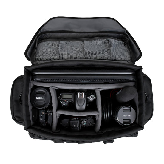 This line of bags offers a large and highly customizable space for you to house your gear. Accommodating larger cine style cameras and mirrorless set ups with additional lenses.